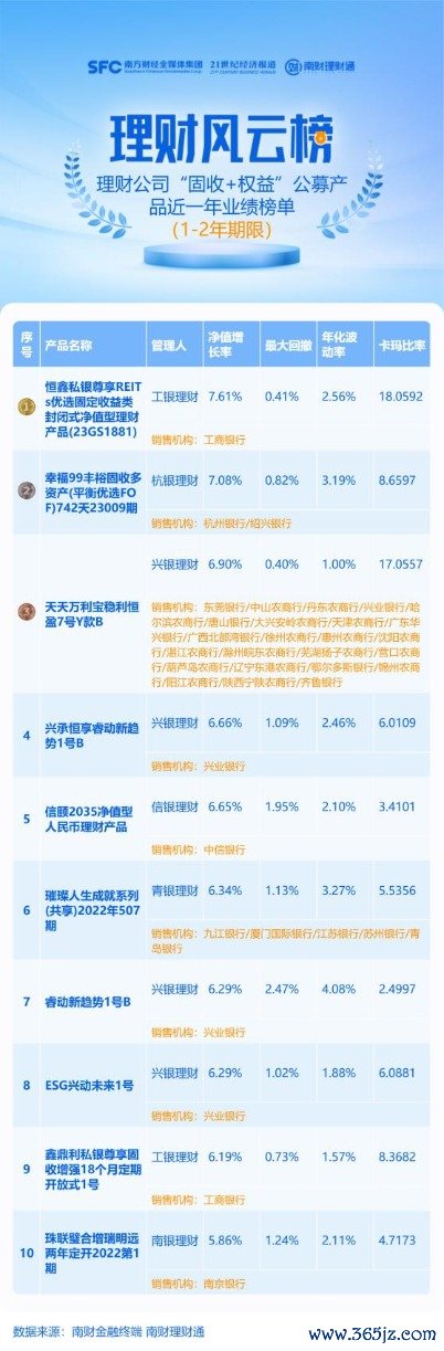 榜單篩選條件:理財(cái)公司發(fā)行的投資周期在1—2年(含)的“固收+權(quán)益”公募產(chǎn)品,同系列同投資周期產(chǎn)品保留一只。