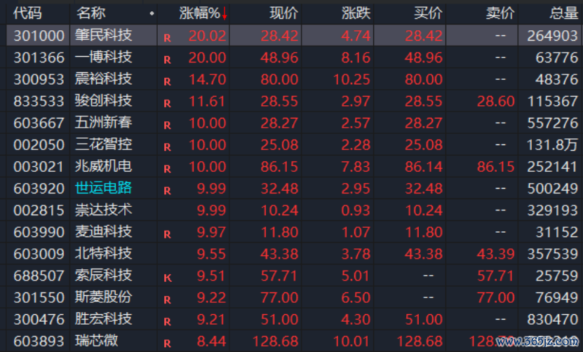 人形機器人板塊更是在午后大幅拉升,截至收盤,該板塊漲停個股接近10只,包括肇民科技、一博科技、震??萍嫉取R豪浞?wù)器板塊今日也走勢強勁,康盛股份、飛龍股份、雙良節(jié)能等漲停。