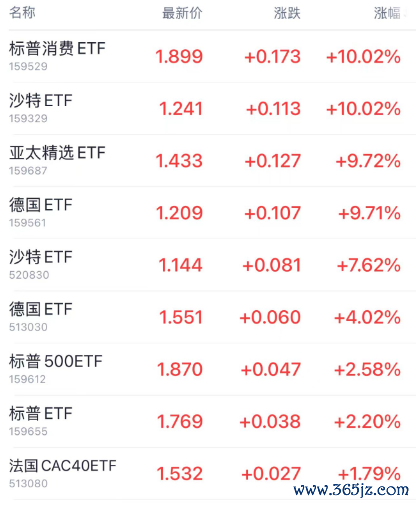 尾盤多只跨境ETF大漲,標(biāo)普消費(fèi)ETF(159529)、南方沙特ETF(159329)漲停,另外亞太精選ETF(159687)、嘉實(shí)德國(guó)ETF(159561)漲超9%,華泰柏瑞沙特ETF(520830)漲超7%,其中標(biāo)普消費(fèi)ETF溢價(jià)率超50%。