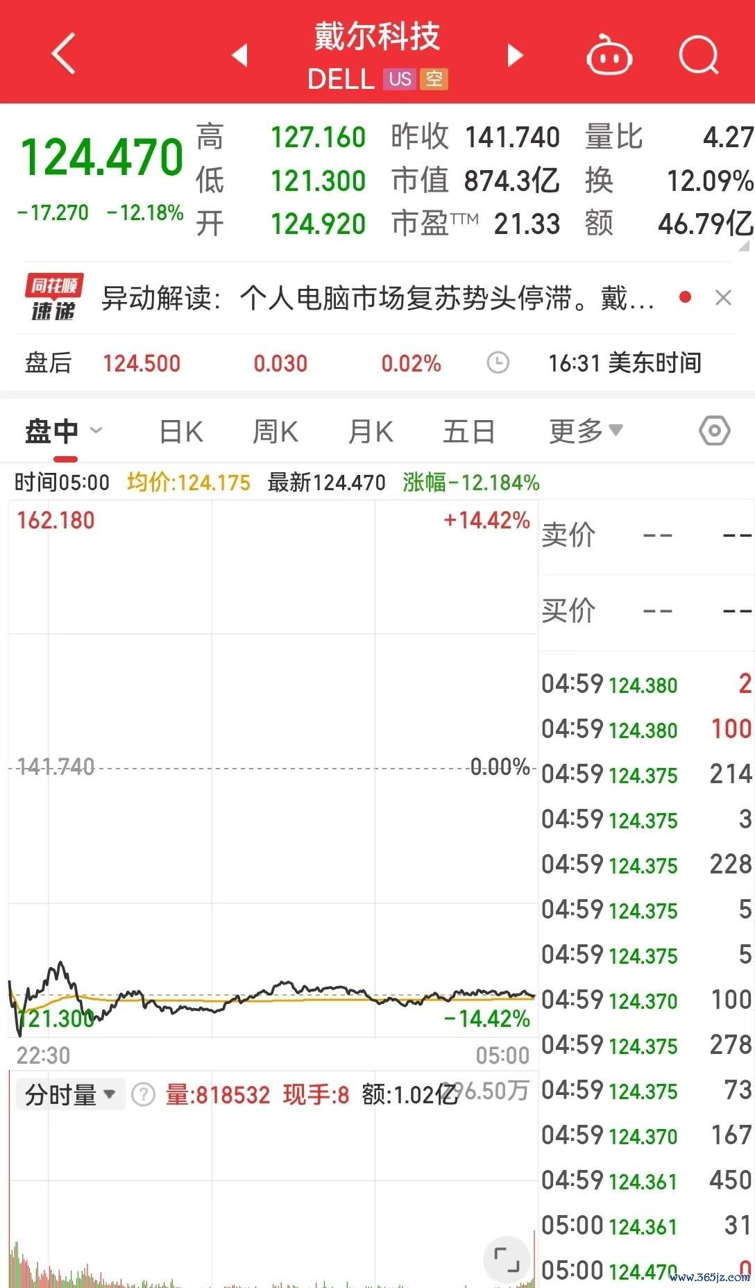 戴爾科技跌超12%,三季度營收、四季度業(yè)績指引均不佳。