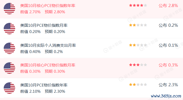 根據(jù)11月27日發(fā)布的美國經(jīng)濟(jì)分析局?jǐn)?shù)據(jù),剔除波動較大的食品和能源項目的核心個人消費支出(PCE)價格指數(shù)較去年10月增長2.8%,環(huán)比增長0.3%。