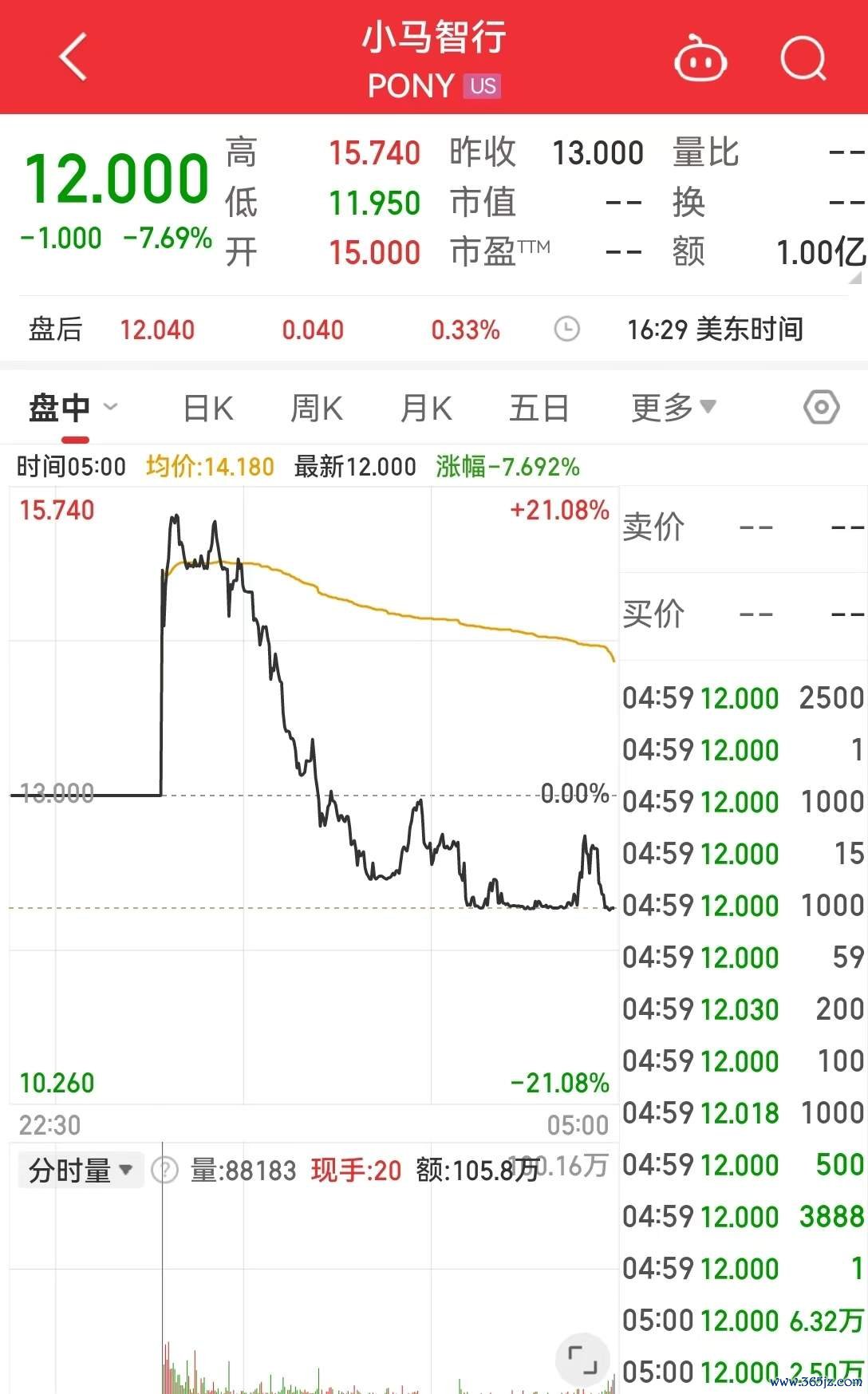 小馬智行正式登陸納斯達(dá)克,上市首日收跌近8%。